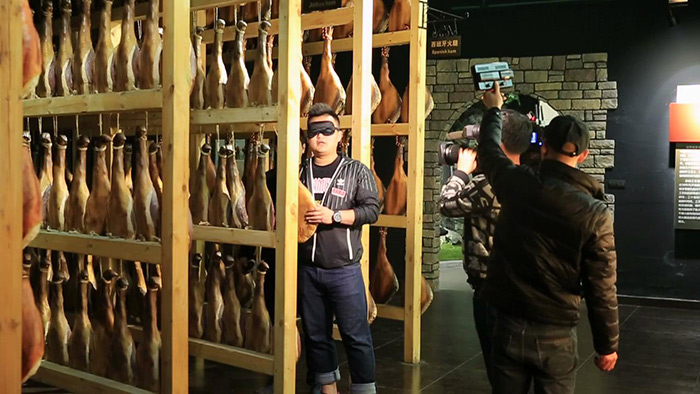 浙江第一美食类电视栏目《厨星高照》的主持人陈黄臻号称美食小霸王,肉食主义捍卫者。来到巴玛火腿的第一件事就是游览展示了各种火腿文化的世界火腿博览馆,在这里黄臻不仅了解了世界各地的火腿品种,而且还展示了盲眼摸腿的技艺,令巴玛火腿的工作人员也是连连赞赏