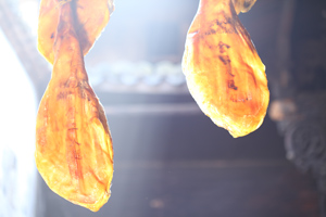 没有优质的猪种,就没有优质的火腿,这是火腿界质朴的真理。许多人都把火腿想当然地理解为腌腊肉,事实上,火腿属于发酵肉,与葡萄酒、奶酪同属于发酵类食品。制作火腿过程中,除了腌制清洗风干程序之外,最重要的过程是发酵熟化。 从火腿生产到最终完成,至少需要一年的时间,如果想得到一支高水准的火腿,则需要三年的“陈酿”。