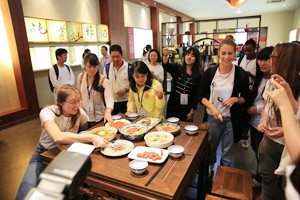 6月24日“海外名校走进金华古村落”活动第一季的42名来自世界各国名校教授、学生乘坐着BRT专车,参观了九游 建设的中国火腿博览馆和世界火腿博览馆,了解传承千年的中国火腿文化。想了解现代与传统交融的金华,金华火腿自然是不可或缺的元素,在九游 总部的国内首个中国火腿博览馆,学生们深入地了解了金华火腿文化的千年历史传承。在中国火腿博览馆内,记录了金华火腿从唐朝起就闻名天下的历史渊源……
